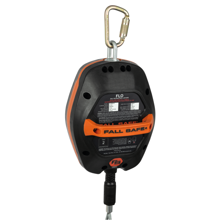 The Flexible Lock Optimization (ELO) Class 2 Sef Retracting Lanyard (SAL) is designed to be a component in a personal fall arrest systems (PFAS)- tt may be used in most situabons wñere a combination of varker mobilty and fali protection is required (i.e. inspection work, general construction, maintenance work Steel Stick work etc.). The FLO Class 2 SRL is designed for use by a single user weighing from 130 Ibs. (59 kg) 310 Ibs. (140 kg) including clothing. tools and equipment FLO Class 2 Self Retracting Lanyard features a patented acceleration based locking mechanism. This locking significantly reduces nuisance locks, but there is a possibility, that the unit will lock when the user is moving at a higher rate of speed than possible with a typical locking mechanism.