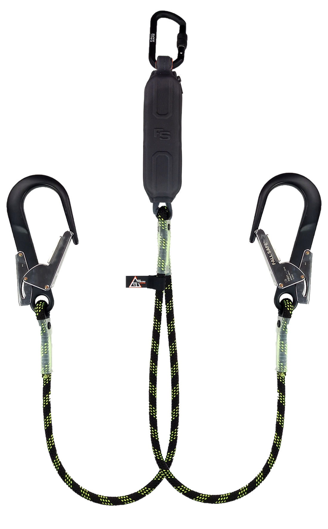 FS522R is a double progression lanyard (EN354, EN355). This equipment is made from 12mm PA rope and has been tested for use on cutting edges (PPE-R/11.074) on a 0.5mm edge. It has a maximum length of 2 meters and several possibilities for connector combinations on request.