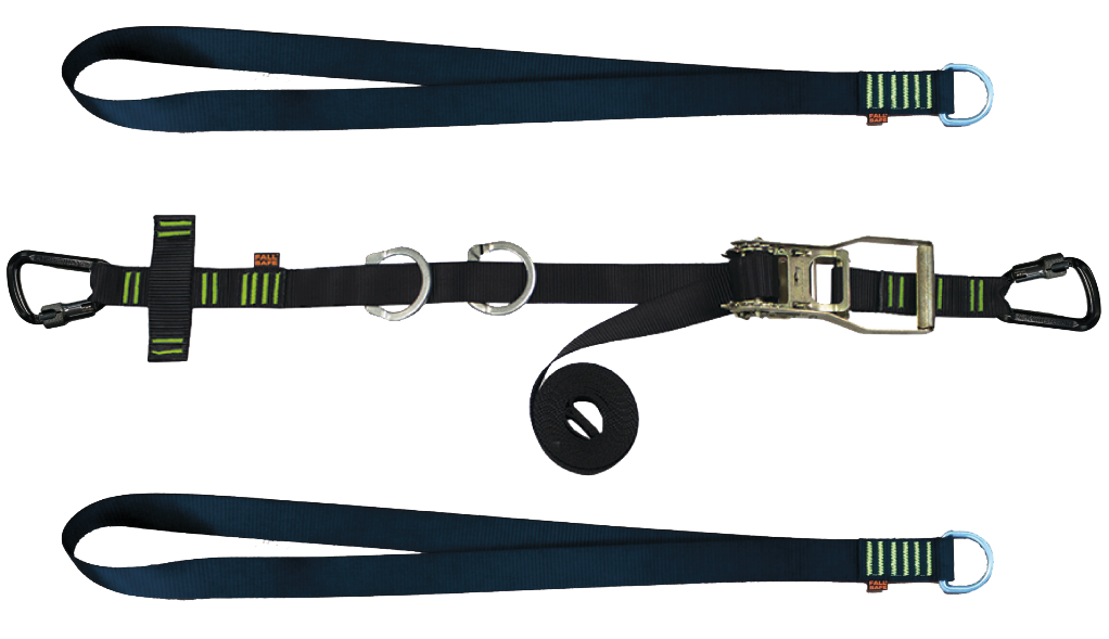 FALL SAFE® FS804 – SAFE WALK PORTABLE LIFELINE SYSTEM is a portable horizontal lifeline system, on 100% polyester tape with a breaking load of 3700 daN, for use by up to 2 people. It protects lateral movements and allows the user to adjust the desired length to a maximum of 5, 10, or 20 m depending on the size of the product, with an easy-to-use band tensioner. Includes an FS8001 bag for safe, easy-to-carry storage, two anchors strop FS801 and 2 steel D-ring for user connecting.